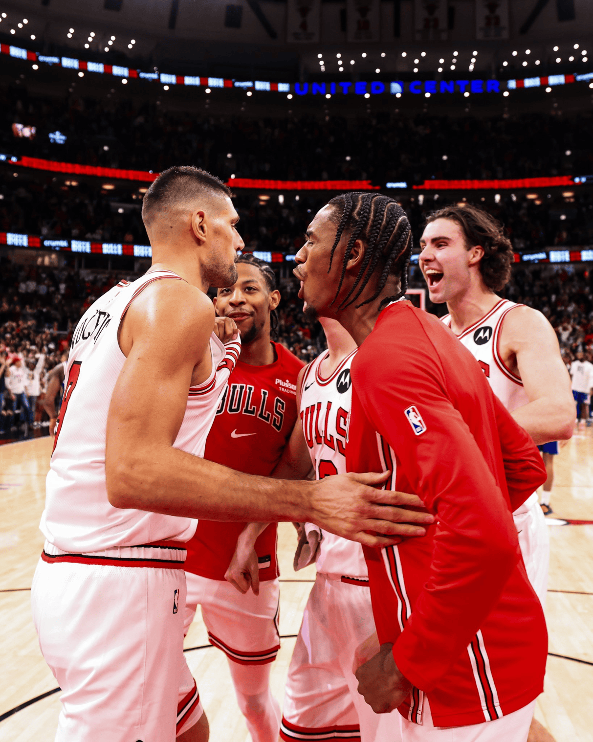 本场比赛,公牛队球员尼古拉-武切维奇出场31分钟,投篮14中8,其中三分球5中1,得到19分10篮板1抢断1盖帽。